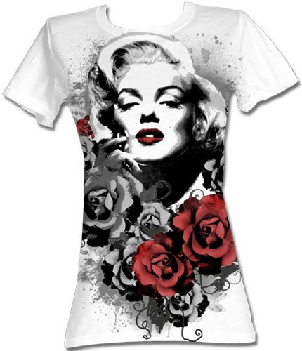 Marilyn Monroe Blond Movie Star Marilyn Red Roses Juniors White T-shirt